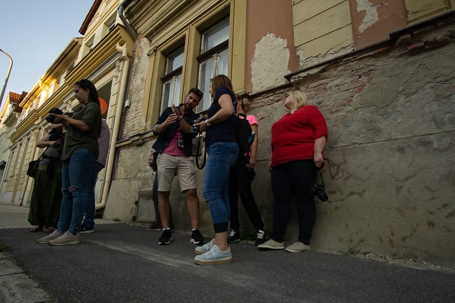 Egy jó fotós elengedhetetlen tulajdonsága, hogy jól mozogjon stúdión kívül is. Ehhez az kell, hogy legyen művészi rálátása az épületekre, utcákra, terekre és azok helyes komponálására, akár emberábrázolással egybe kötve. Ezért az elméleti órán hallottakat, kivisszük gyakorlatba is. A mozgásábrázolás és a mélységélesség mellett, itt már nagyobb hangsúlyt fektetünk az elkészítendő kép komponálására. A vár adottságainak köszönhetően, a kötelezően elvégzendő feladatok mellett, számtalan lehetőség van érdekes házakat, utcákat, részleteket kiragadni és képpé formálni. Semmit nem hagyunk a véletlenre.