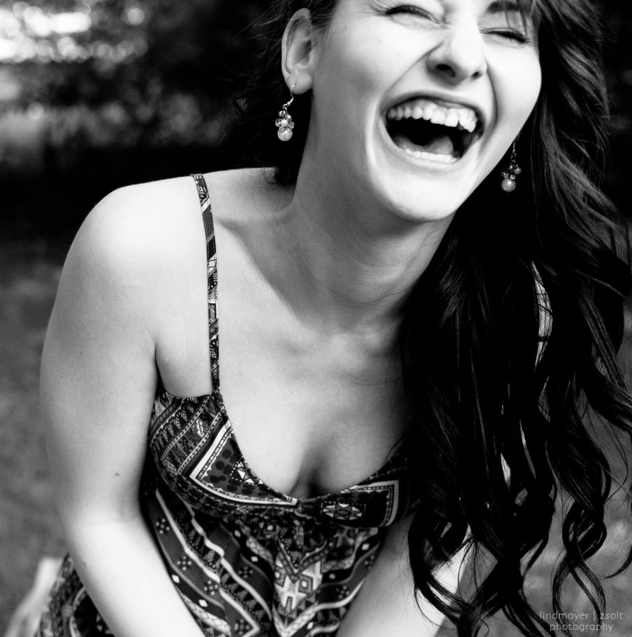 Még korábban, egy barátnőmmel fotóztak minket, kültéren. A fotózás szünetében kezembe vettem a gépet és tudattalanul elkezdtem képeket csinálni a barátnőmről, valójában csak kattintottam. Éreztem, hogy nagyon, görcsösen akar nekem pózolni, ezért kihasználva az ismertséget, elmeséltem neki egy közös vicces sztorinkat, ami őszinte kacagásra késztette őt. Ilyen felhőtlen mosolyt pedig öröm volt fotózni – még ha a fotós is rakta rá a vízjelét, én tudom, hogy milyen jó élmény volt: